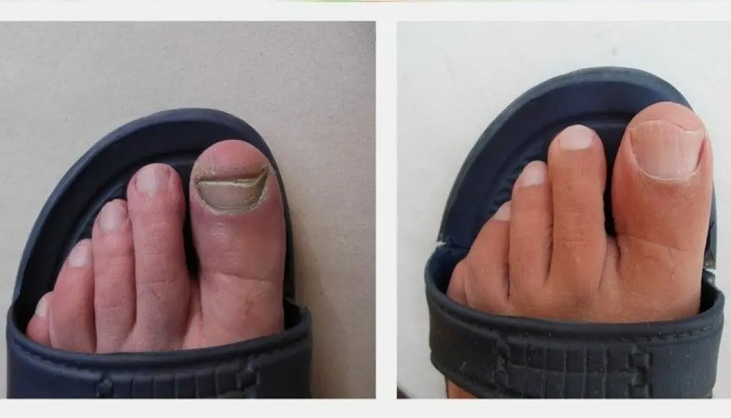 Todo estaba hinchado, supuraba pus, el dolor no se podía aliviar. Apenas podía dormir por la noche. Por la mañana fui al cirujano y me dijo que me quitara la uña y limpiara el lecho ungueal. Se le había unido otra infección y si quería deshacerme de la infección tendría que cortar todo el dedo. Y si se extendía más, tendrían que amputarme todo el pie!!!!.