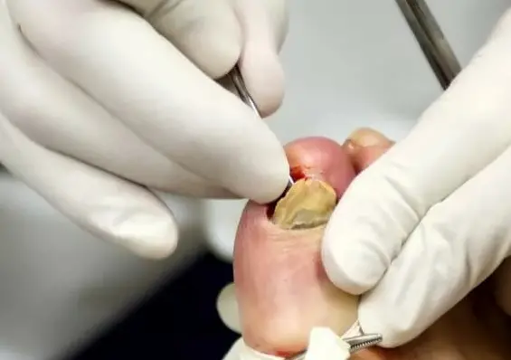 Todo estaba hinchado, supuraba pus, el dolor no se podía aliviar. Apenas podía dormir por la noche. Por la mañana fui al cirujano y me dijo que me quitara la uña y limpiara el lecho ungueal. Se le había unido otra infección y si quería deshacerme de la infección tendría que cortar todo el dedo. Y si se extendía más, tendrían que amputarme todo el pie!!!!.